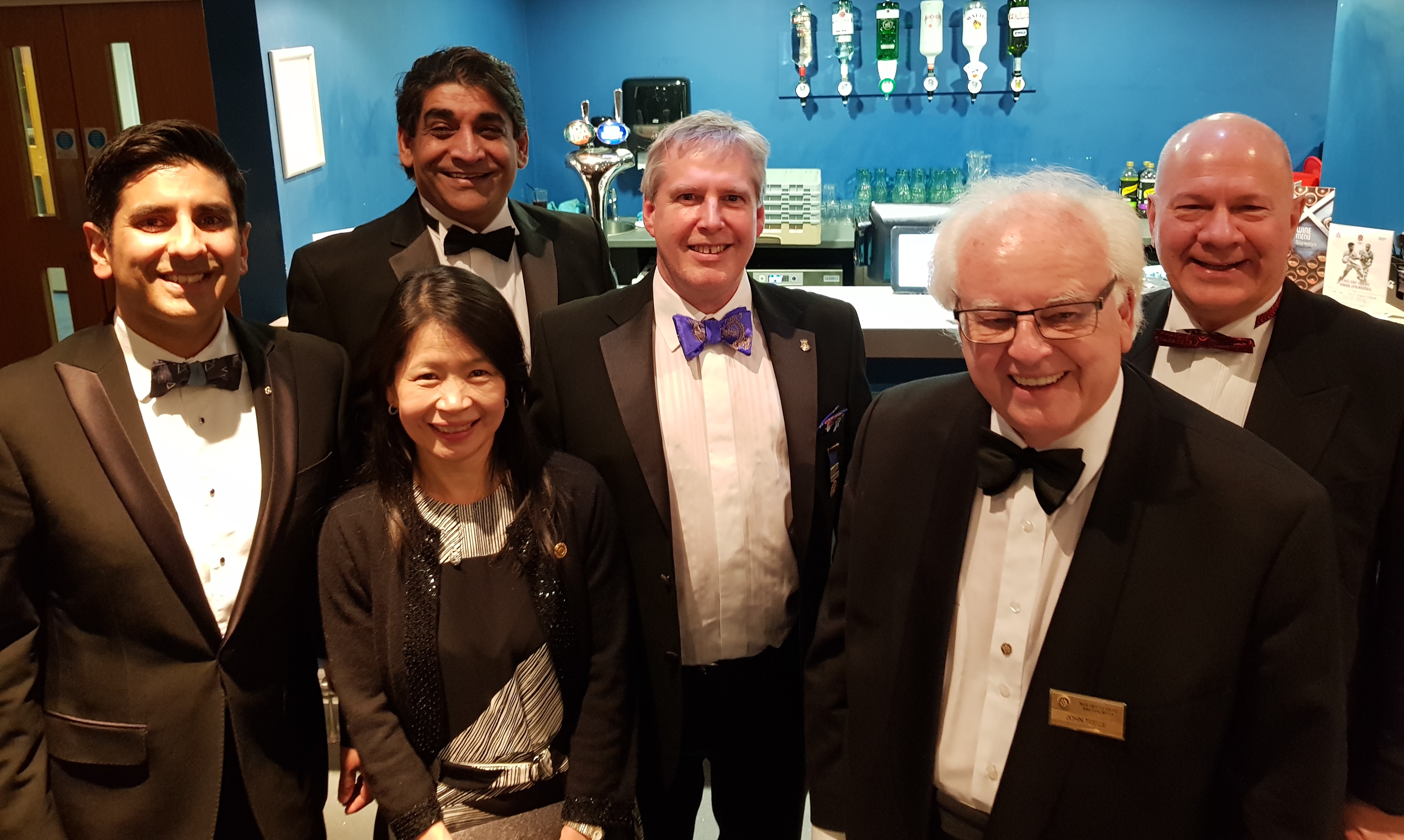 Several members of the Club and guests attended the Worcester Night on 19 April 2018 staged at Worcester Sixways Stadium by the Rotary Club of North Worcestershire. We enjoyed a three course meal and an after dinner speaker in the company of Clubs from all over Worcestershire, with over 170 Rotarians and guests attending. Pictured from left are: Rotarians Vikas Sehdeva; Mu Docherty; Club President Amal Rampal; Tony Docherty; John Teece; and Ron Pearce.