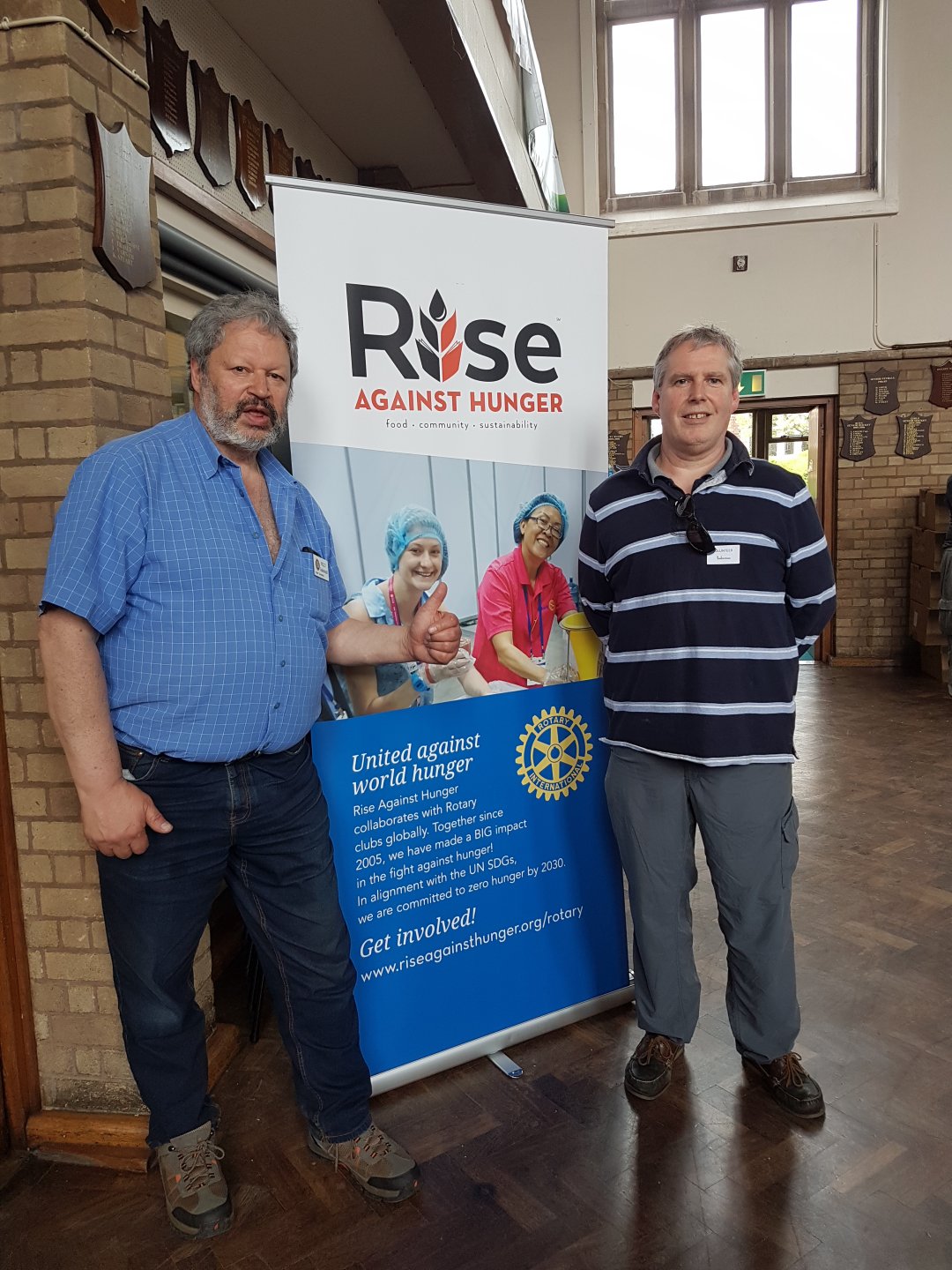 Tony and Mu Docherty both members of the Rotary Club of Bromsgrove attended the ‘Rotary Tackling Hunger Event’ in Coventry on 22 April 2018, hosted at King Henry VIII School. Over 300 volunteers of all ages attended. Four schools supported the event with fundraising and volunteering, and a number of Rotary Clubs collaborated in staging and supporting the event. As a result, 50,112 meals were packed for ‘Rise against Hunger,’ and these will go to schoolchildren in Kibera, Kenya. £1000 has been donated to the Trussell Trust for equipment to support their work in the UK, and 250 kilos of food donations have gone to the Trust for UK Food Banks.