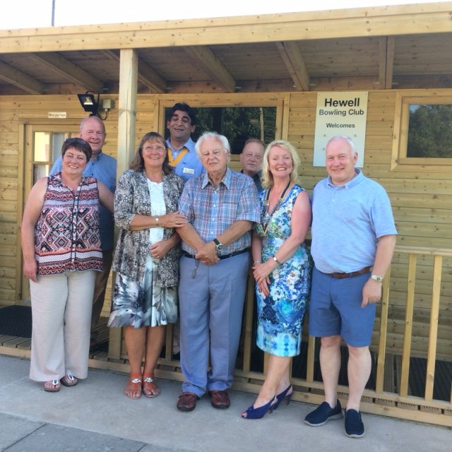 The Rotary Club of Bromsgrove is delighted to have supported Hewell Bowling Club with a donation of £8000 as a contribution towards the construction of the new pavilion. Pictured left to right are: Rotarians Karen Bowe; Ron Pearce; Liz Pheysey; Amal Rampal; John Teece; Ken Pheysey; Deborah Roberts; and the Captain of the Bowling Club.